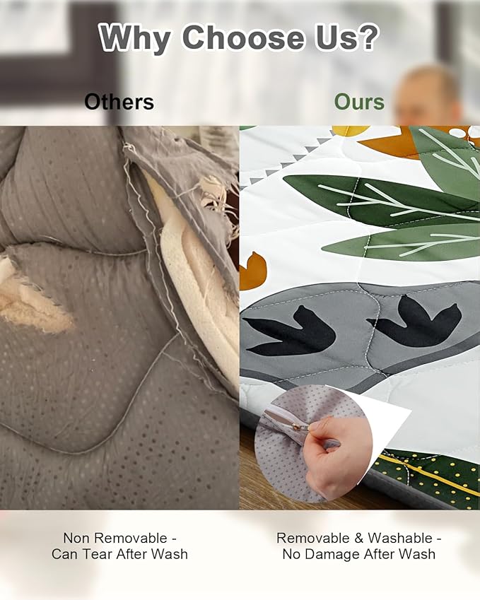 - Easy to Clean: With a removable, machine-washable cover, this play mat is designed for easy maintenance. Simply remove the cover and toss it in the washer, making cleanup quick and hassle-free.