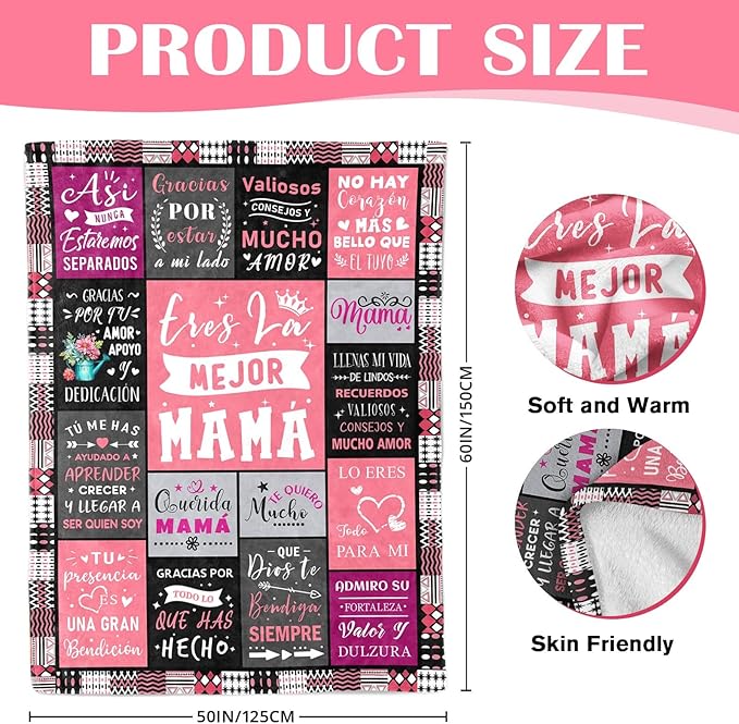 - Regalos para Mamá: Looking for a meaningful gift for Mom? This beautifully designed fleece blanket is more than just warmth—it’s a daily reminder of your love. Soft, cozy, and covered in heartfelt messages, it will bring a smile to her face, wrapping her in comfort and affection every time she uses it
