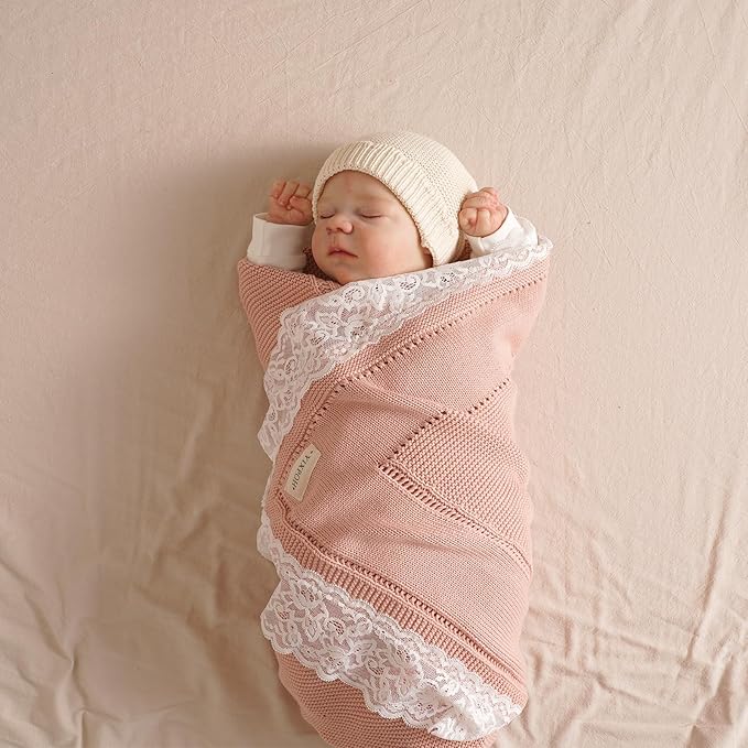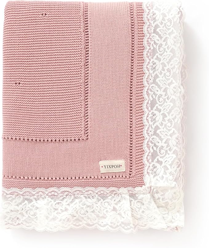 100% Organic Cotton Baby Blanket Knitted Softer Receiving Swaddle Warm Cozy Cuddle Crib Blanket for Newborns Infants Toddlers Boy and Girls Blush Pink