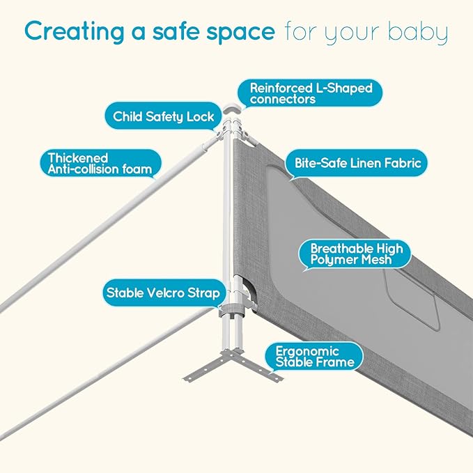 - CLIMB-PROOF HEIGHT & HASSLE-FREE ACCESS: At a tall 24.8 inches, this rail is designed to deter little escape artists, keeping them safely in bed. But safe doesn't mean inconvenient for you! The smooth, whisper-quiet lift mechanism allows you to lower the rail effortlessly with one hand, making bedtime stories, late-night cuddles, or changing sheets a breeze