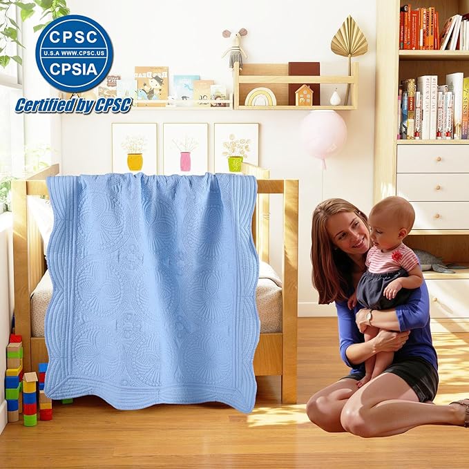 - CPSC Certification: Our baby blankets have been tested and certified by Amazon's official cooperative testing agency and are suitable for babies over 0 years old. Safe and reliable. If you need a test report, please contact customer service. This baby quilt is safe and reliable, please feel free to use it! Fabric Type:70% Cotton / 30% Polyester.