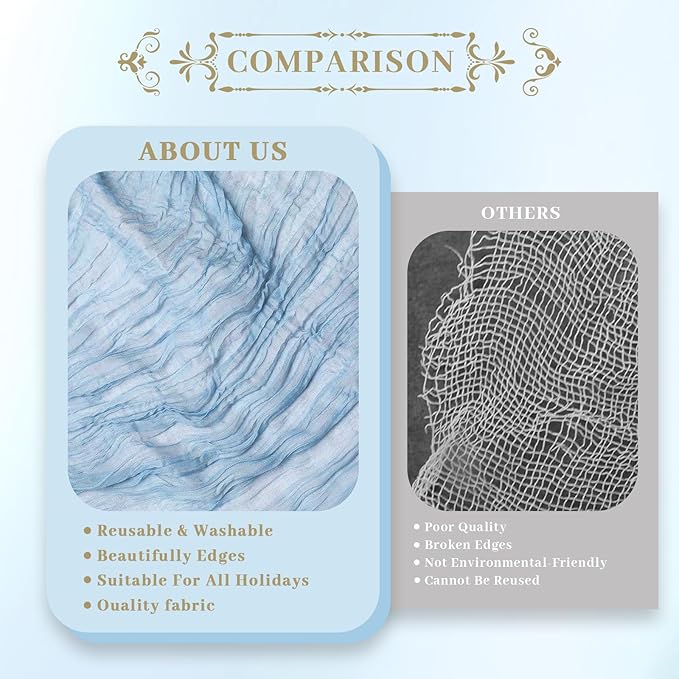 - 【Superior Quality】Crafted from cheesecloth fabric with manual dying process. The edges are thoughtfully stitched to prevent fraying. This top-notch material is incredibly soft, breathable, and long-lasting, bringing a delightful vintage, rustic, and aesthetic charm to your table.