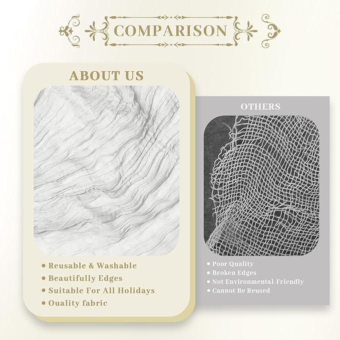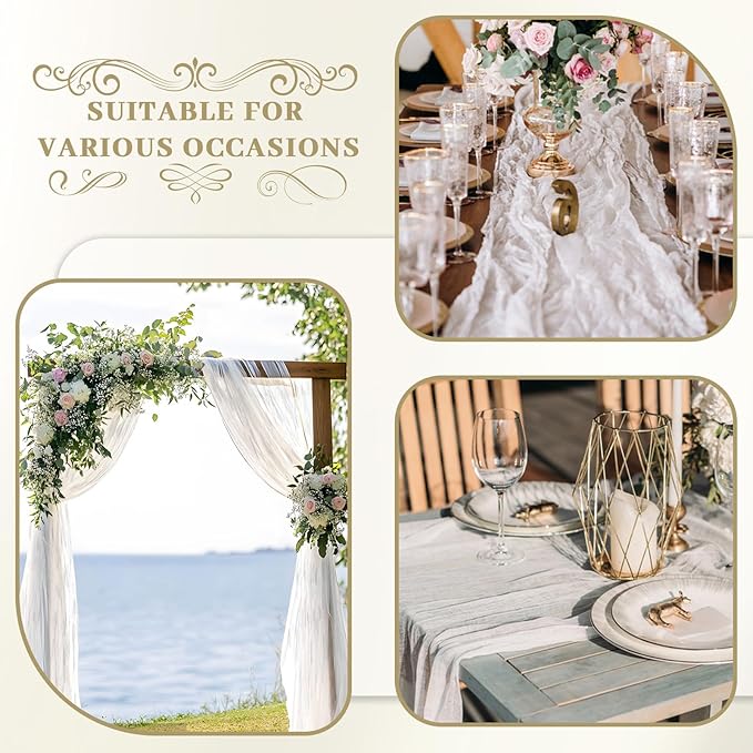 - 【Wide Application】 Excellent choice for beautifying tables, chairs, and even wedding arches. Perfect for a wide range of occasions: home decorations, Baby Showers, weddings, bridal showers, birthday parties, Valentine's Day, Thanksgiving, Christmas, anniversaries, and boho-themed feasts. The naturally draped hem adds a touch of elegance that perfectly complements your artistic taste.