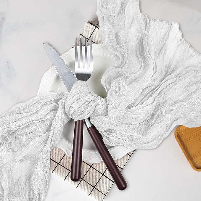 - 【Superior Quality】Crafted from cheesecloth fabric with manual dying process. The edges are thoughtfully stitched to prevent fraying. This top-notch material is incredibly soft, breathable, and long-lasting, bringing a delightful vintage, rustic, and aesthetic charm to your table.