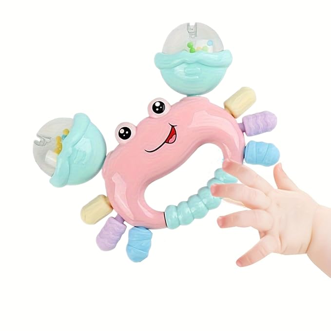 Baby Crab Rattle Toy - ABS Material, Handheld Crab Shaped Toy for Infants, Early Education Grip & Smart Toy for Newborn Boys and Girls(345A) (Pink)
