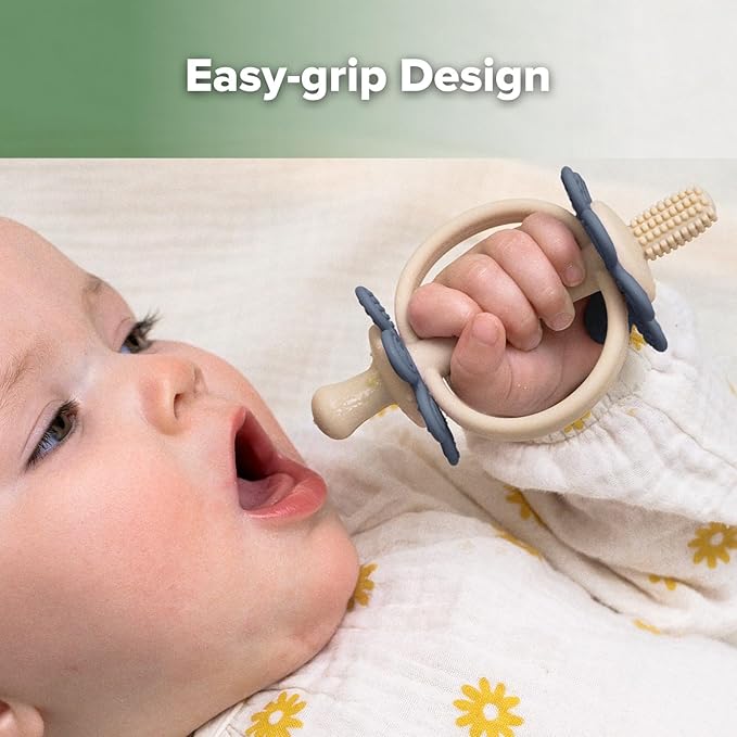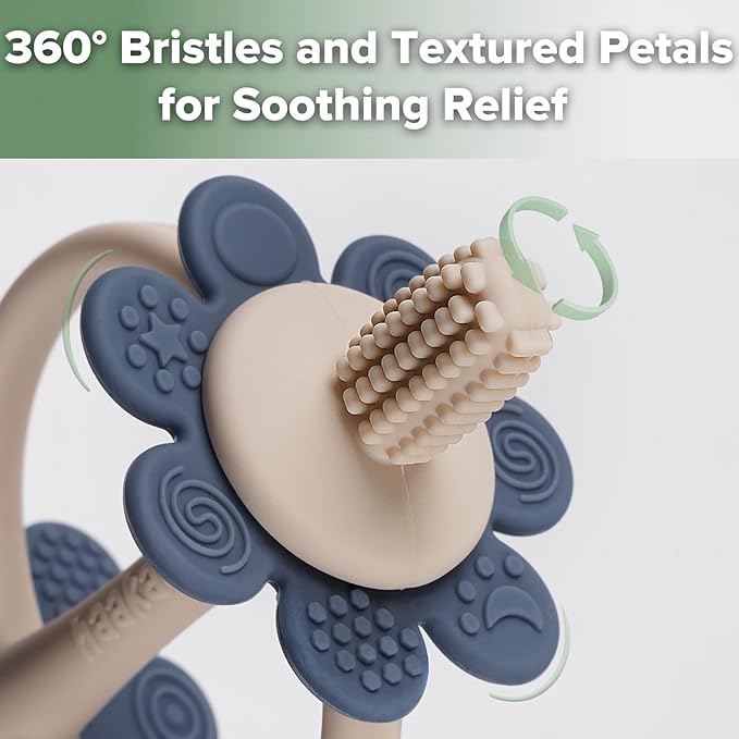 - ππππ-πππππ ππππππ πππ πππππππ:With a nipple-shaped end for comfort and 360Β° bristles for gum massage, this teether provides teething relief and help supports oral hygiene.