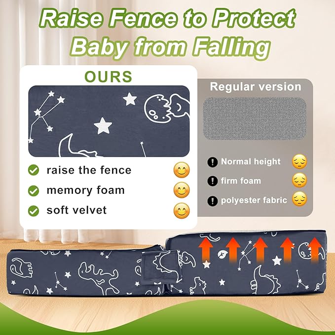 - 【Usage Instructions】Due to compressed packaging, the cover may have wrinkles (this does not affect use). For optimal performance, please allow 48 hours after unboxing for the foam to fully rebound before letting your child use the bed.