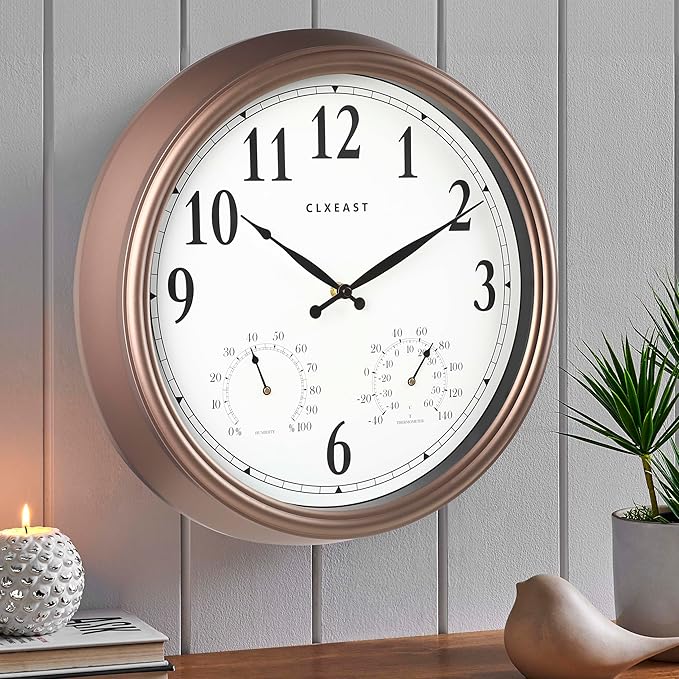 CLXEAST Indoor Outdoor Clocks Waterproof 18 Inch, Large Outdoor Clock with Temperature and Humidity Combo,Weatherproof,Bronze/Brown