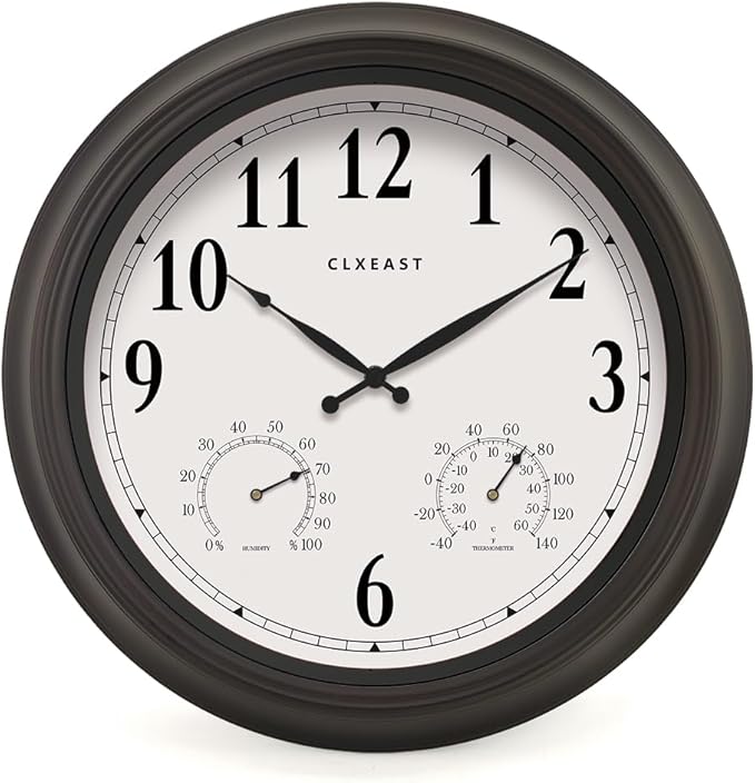 CLXEAST Outdoor Clocks for Patio Large Waterproof with Thermometer,18 inch Outdoor Wall Clock with Temperature and Humidity Combo,Weatherproof,Oil Rubbed Bronze