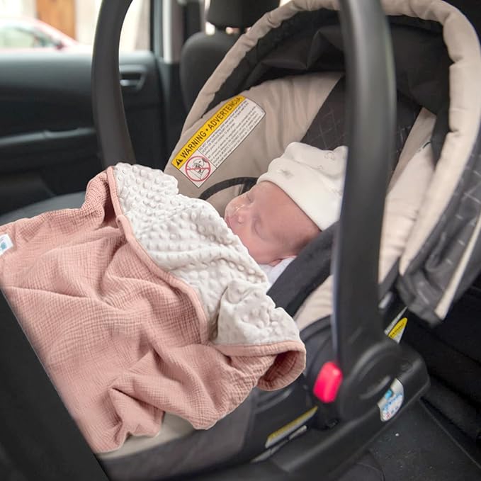 lulumoon Baby Blanket for Newborn Receiving: Minky Dot & Muslin Lightweight - Thermal Blanket Gift for Baby Shower & Hospital Welcoming 30"x40"(Pink)