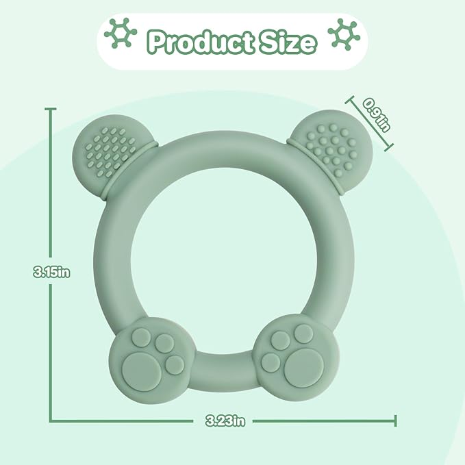 - 1.Cute 3-Color Panda Design: This set includes three charming panda-head teethers in vibrant colors, sparking baby’s visual curiosity and encouraging grasping play.
