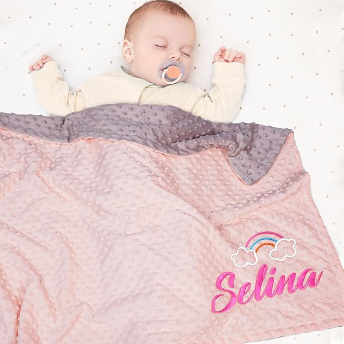 - 【Double Layer Dotted】 The Customized baby blanket is made of minky and satin fabric, featuring with dotted bumpy textured surface, which could provide tactile stimulation for babies. The soft and fluffy material makes babies feel like they are floating on a cloud.