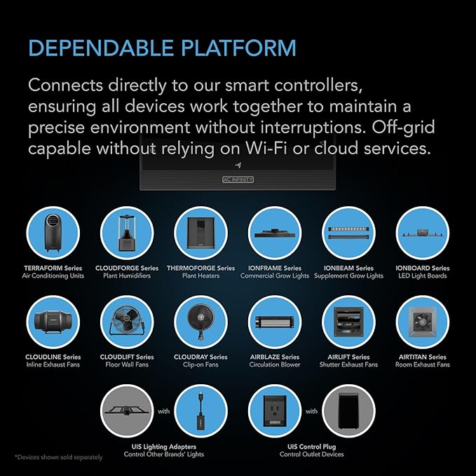 - Includes VPD and humidity automations, programmable timers, a hideable backlit display, and auto-start functionality with backup memory.