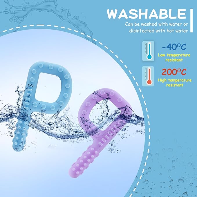 - 【Easy To Clean】 As an everyday chew toys for kids with autism, they must be kept clean. These teether toys can be cleaned with mild soapy water or simply place them in the dishwasher. When using the product, we recommend washing before first use and after each use.