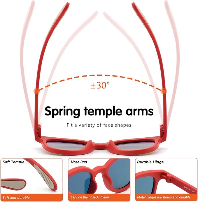 - Classic Design: Cute and fashionable kids polarized sunglasses with a variety of frame colors, suitable for both boys and girls. Super light and anti-skid design makes this girls/boys sunglasses not only suitable for children's daily life, but also outdoor sports and activities.