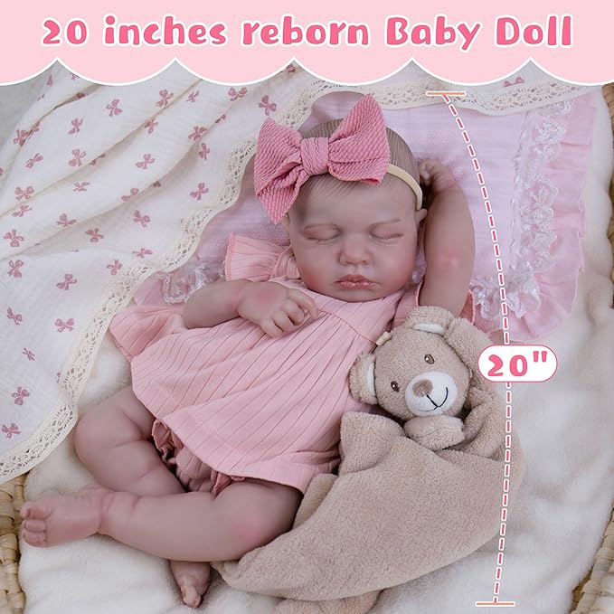 - Ultra-Realistic Details, Like Gaining a "New Family Member" - This 20-inch realistic baby doll captures the charming essence of a real baby girl through hand-painted blushing, hand-applied eyelashes, and rosebud lips. Both its texture and appearance mimic a real newborn, bringing a warm "new family member" vibe the moment you bring it home.