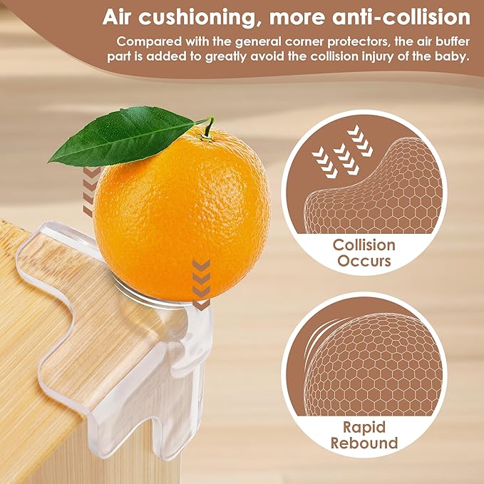 - đ¶ăImproved ProtectionăWith a combination of T-shaped and O-shaped designs, our baby corner protector guards adopt airbag design, which can greatly avoid the harm caused by collision to children. When a collision occurs, the air bag can protect your baby from collision injuries through cushioning and rebounding.