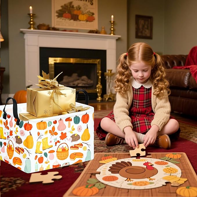 Rectangle Autumn Harvest Gift Storage Home Shelf Storage Basket Organizer Box Clothes Laundry Hamper Toys Nursery Basket Baby Laundry Basket with Handles