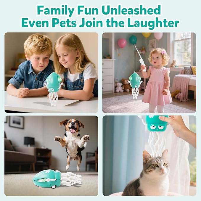 - 3-IN-1 PLAY MODES: ① Hilarious Dancing Squid: Features wild tentacle moves, wiggling like it's at a toddler rave, soft lights, and cheerful music | ② Sensing Crawling Squid: Uses intelligent sensors to detect and steer around obstacles, keeping the fun going | ③ Interactive Fishing Rod Game: The included fishing rod can be installed on an octopus, allowing kids to imitate fishing