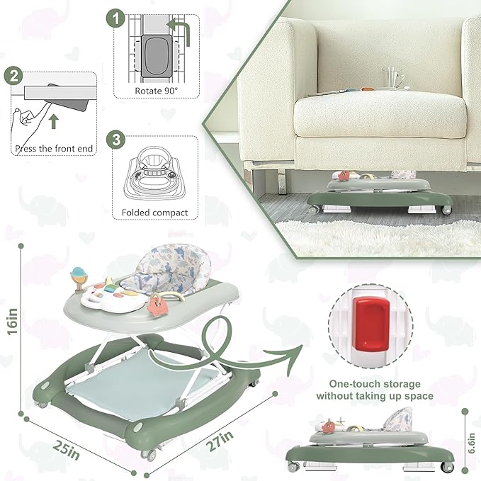 - Easy To Assemble And Fold: The baby boy and girl walker is easy to assemble and folds the walker with wheels in just a few steps, then unfolds and sits baby down; the baby girl walker can be stored under the bed or under the sofa without taking up too much space. The compact folding design makes this collapsible baby walker easy to carry around!