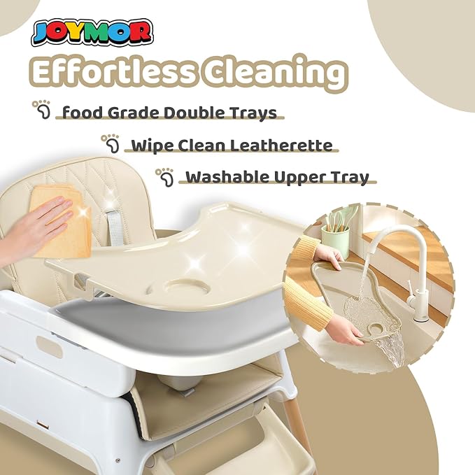JOYMOR 5 in 1 Baby High Chair for Babies and Toddlers, Portable Highchair Fold Compact, ConvertibleBaby Feeding Chair Booster for Eating with Detachable Double Tray, 5 Point Harness (Beige)