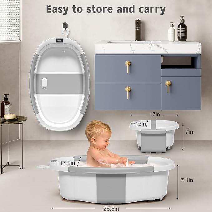 - 【Extra Spacious Baby Bathtub】Still struggling with finding a spacious bathtub for your baby and saving space at home? Our Collapsible baby bathtub solves this problem – its capacity is 30% larger than most Collapsible bathtubs on the market, allowing your little one to stretch out and make bathing a relaxing experience for you and your baby.