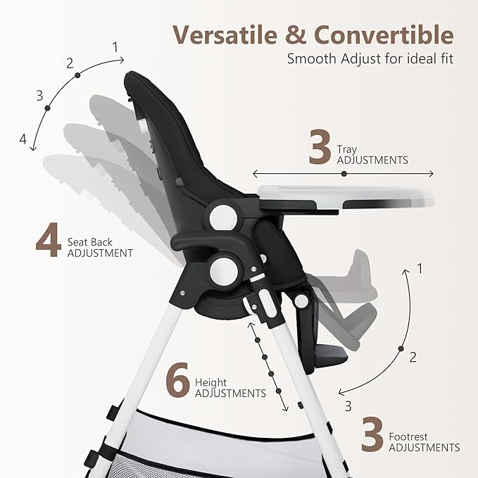 - Multifunctional High Chair: It can be converted to a Infant highchair, baby feeding chair, toddler high chair and child seat or more; Meet your various needs: 6 position height, 4 position seat recline, 3 position footrest, 3 position trays