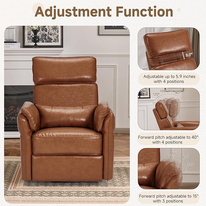 - [Swivel and Rocking Motion]The power glider swivel rocker recliner chair is designed with Mom's comfort in mind, featuring a 270-degree swivel and 90-145Β° recliner angle, silent gliding mechanism with one-touch operation, offers flexibility and versatility for maximum comfort, plus includes an extended footrest for complete relaxation, making it perfect for activities such as watching television, sleeping, and reading.