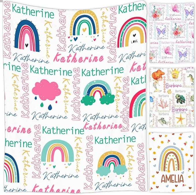 - MULTIPLE STYLES:Name blankets are available in many different themes,elephant,dinosaur,lion,butterfly, rainbow,giraffe and etc.,cute elements are fit for baby boys and girls.Customize a baby blanket for your cute baby,also be a perfect gift for your family and friends