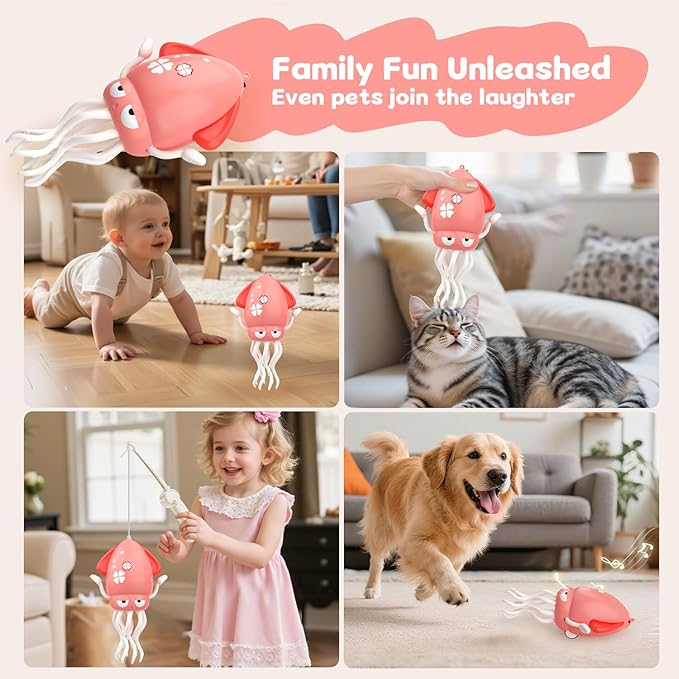 - Creative Fishing Rod Game: The included toy fishing rod can be mounted on the magic dancing octopus, letting kids lift and walk with it as if they're "catching" a moving marine animals just like a smart tentacle explorer. This imaginative activity enhances engagement and adds variety, making it a great choice among autism kids toys, newborn shower gifts, and birthday gifts.