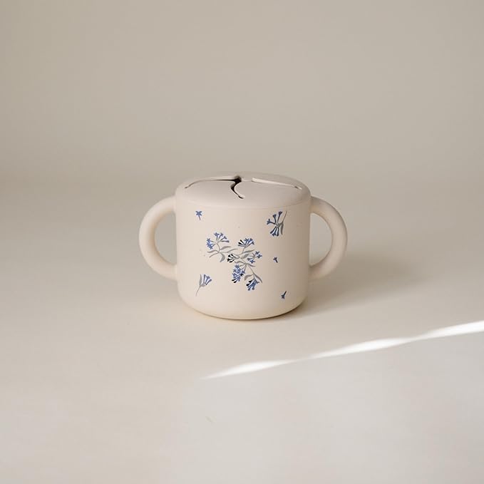 mushie Silicone Snack Cup | Spill Proof Food Container for Toddler and Baby (Lilac Flowers)