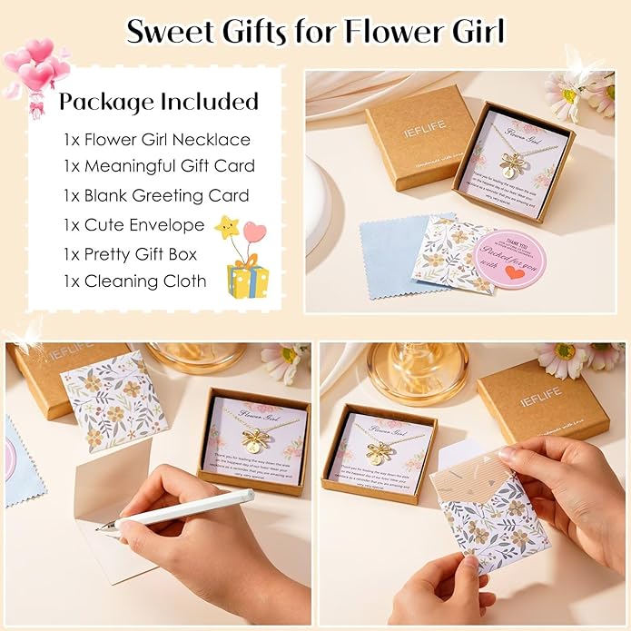• Perfect gift for flower girl: With a gift bag, gift box, beautiful card, silver polishing cloth and a blank note card attached to an envelope, this flower girl necklace can be given directly to the person you want to give it to, no extra packaging needed. Give this exquisite flower girl necklace to your lovely flower girl on your wedding day and let her know that she is also an important member of the wedding party