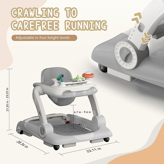 - 5-in-1 Baby Walker: Baby walker can be easily converted into 5 modes, including baby walker mode, bouncer combo mode, rocker mode, eating Table mode, hand push mode. Baby walker to meet the needs of different stages of baby's exploration, growth and baby up together, suitable for 6-18 months baby.