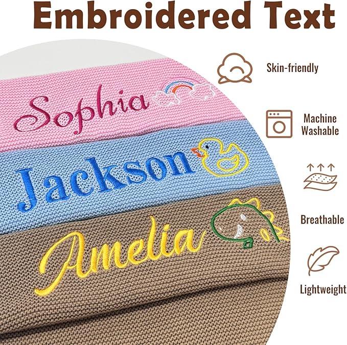 - 【100% Soft Knitted Fabric】 Custom baby blankets are made from natural materials that are gentle on the skin and reduce the risk of allergies. The breathable knitted design provides year-round comfort, and the natural embroidery process does not contain any harmful chemicals, ensuring a safe and peaceful sleeping environment.