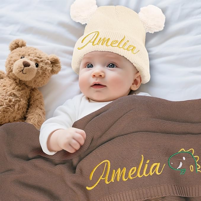 - 【Personalized Baby Blanket】 Click “Customize Now,” enter your baby's name or text, and choose from 8 colors, 13 thread colors, 25 cute patterns, and multiple fonts to create a one-of-a-kind embroidered baby blanket. A baby blanket embroidered with your baby's name will become a cherished memory as they grow up.