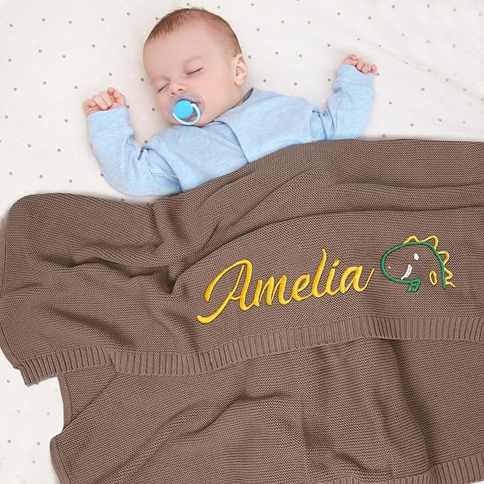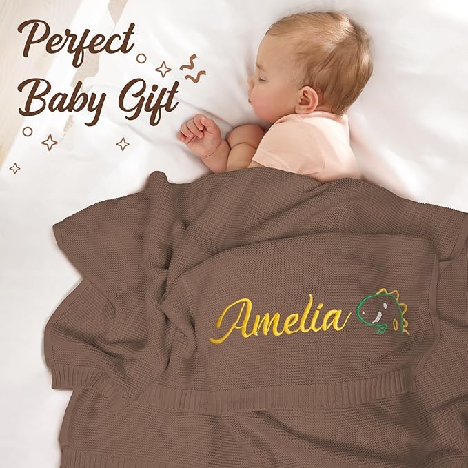 Personalized Baby Blanket with Embroidered Name, Custom Knit Blanket for Girls Boys, 30x40in Customized Baby Receiving Blankets, Personalized Christmas Birthday Baby Newborn Gifts (Brown)