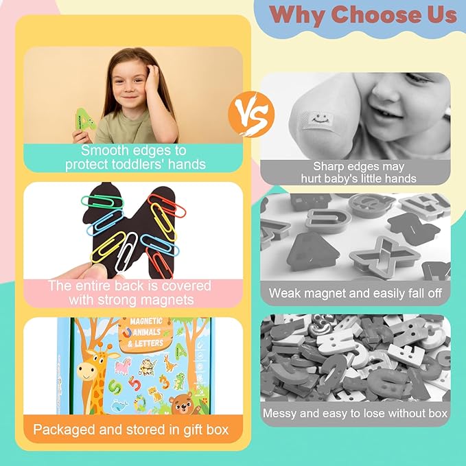 - GREAT GIFT FOR TODDLERS - These toddler magnets for refrigerator come in a convenient storage box, making them easy to store and carry. They are the perfect educational gift for birthdays, holidays, or any occasion, combining both fun and learning.