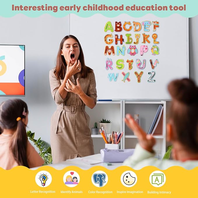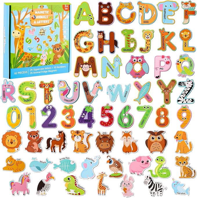 - EDUCATIONAL AND INTERACTIVE - This 52-piece fridge magnets set includes 26 colorful animal magnets and 26 matching uppercase letters. A fun and engaging way for kids to learn animal names, recognize letters, practice spelling, and spark creativity.