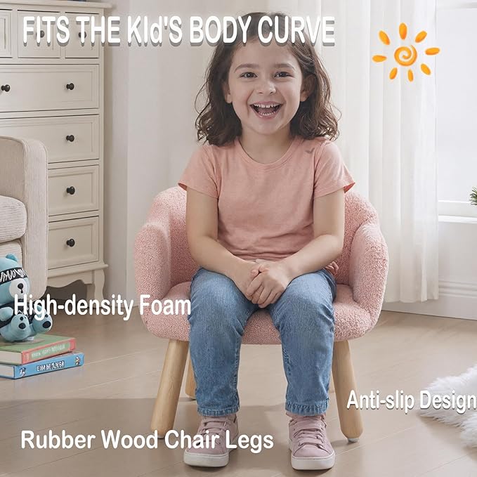 Pink Toddler Chairs, Kid Armchair, Toddler Chairs Ages 1-4, Shepra Kids Chair for Children, Wooden Kids Chair, Kid Room Reading Chairs for Playroom/Living Room/Nursery, Pink