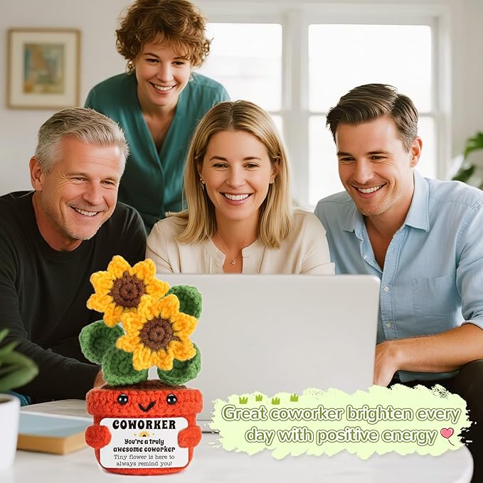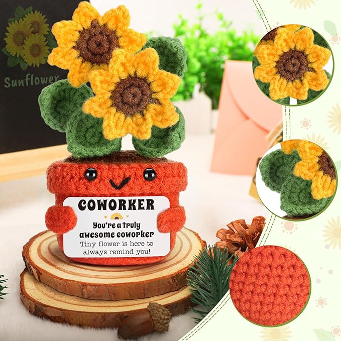 - Handmade Birthday Gift for Coworker: cute tiny sunflower is beautifully crafted, offering a warm and fuzzy feel, it’s a reminder that"Coworkers like you are the sunshine to our sunflower-filled office" bright color of a sunflower can spark creativity and inspiration, inspire new ideas, solutions and creativity in the workplace