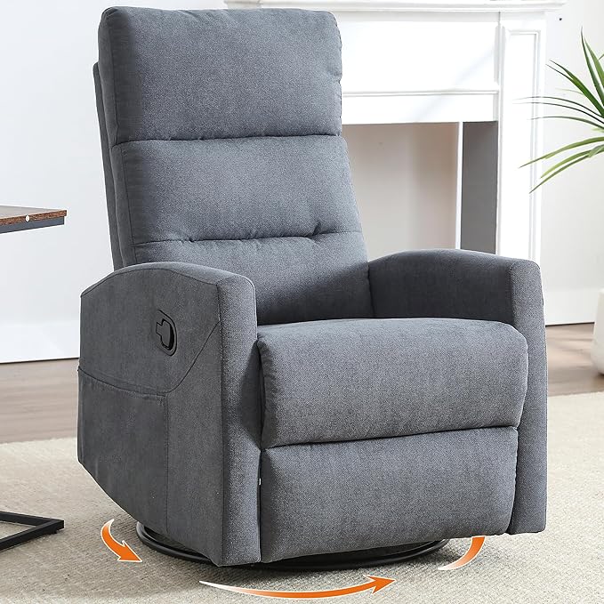 - [High-Quality Materials] Upholstered in breathable, easy-clean fabric and padded with high-density foam, this swivel recliner chair offers plush comfort that rebounds quickly. Just pat the cushions or wait 5 minutes after unboxing for full loft restoration. Perfect for recliner chairs for adults who value both comfortable and practicality.