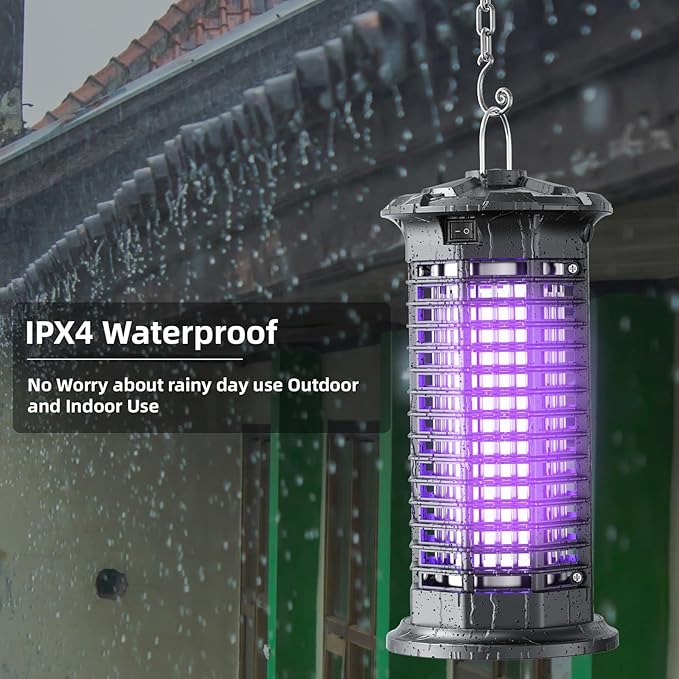 - 【Perfect for outdoor and indoor】 Defends up to 1,500 sq. ft.Bug Zapper can trap and kill mosquitoes, fruit flies, wasps, beetles, moths, Aedes, gnats, fleas, and aphids. IPX4 waterproof suitable for home, yard, patio, deck, lawn, garden, pool, garage, deck, camping, and pergola. Keep you and your family away from those pesky insects and mosquitoes.