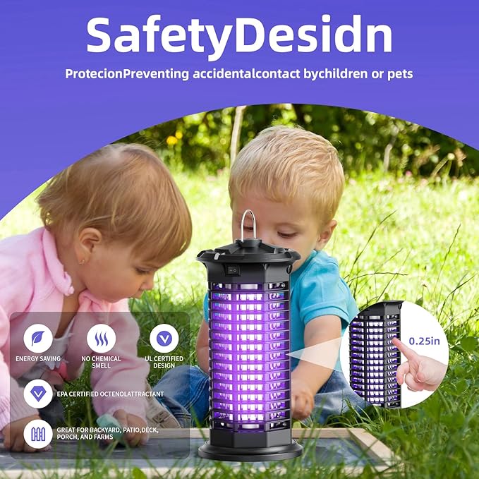- 【EPA registered】: Safe for your family and pets, this mosquito zapper outdoor is EPA registered, ensuring reliability and peace of mind. Durable ABS Plastic Construction, built to last, with a safety grid to protect children and animals from accidental contact