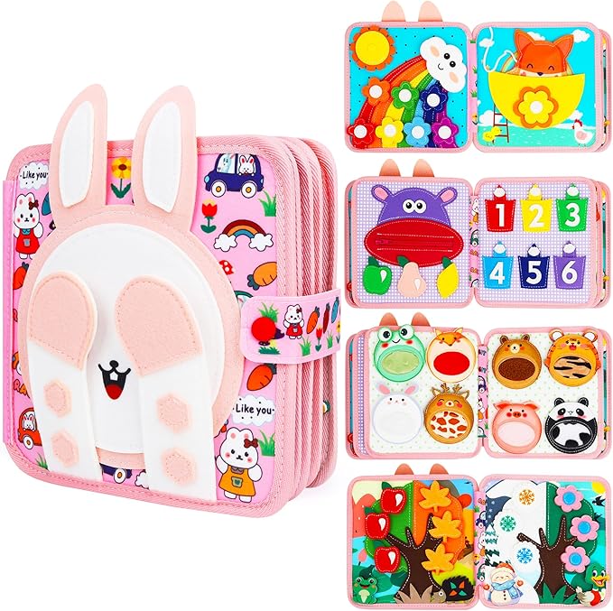 - Montessori-Inspired Bunny Adventure: Spark your toddler's imagination with this adorable bunny-themed busy book. Its soft felt pages, seasonal landscapes, and charming animals provide a sensory-rich experience that blends play with foundational learning principles for ages 1-3.
