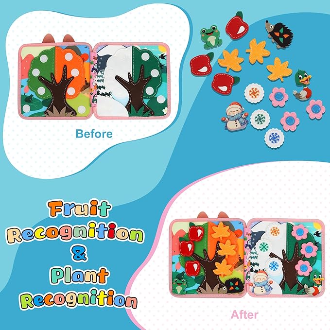 - Discover the Wonders of Nature: Engage in playful learning about colors, seasons, and weather patterns. This interactive book encourages toddlers to match colorful fruits, identify animals, and explore changes in nature with fun, movable pieces like a bright sun and fluffy clouds.