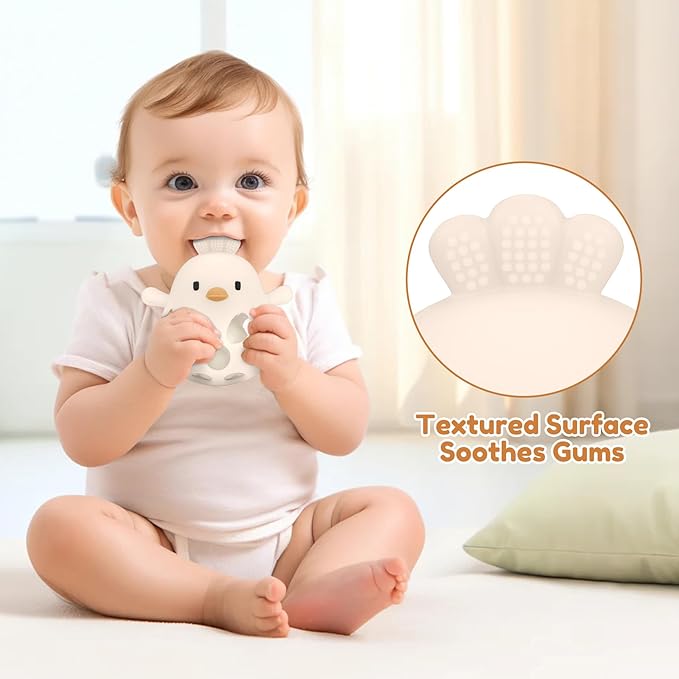 - 【Sensory Delight & Teething Relief】Our adorable chick-shaped teether is designed with textured surfaces and hollow design to soothe sore gums while stimulating baby's sensory development!