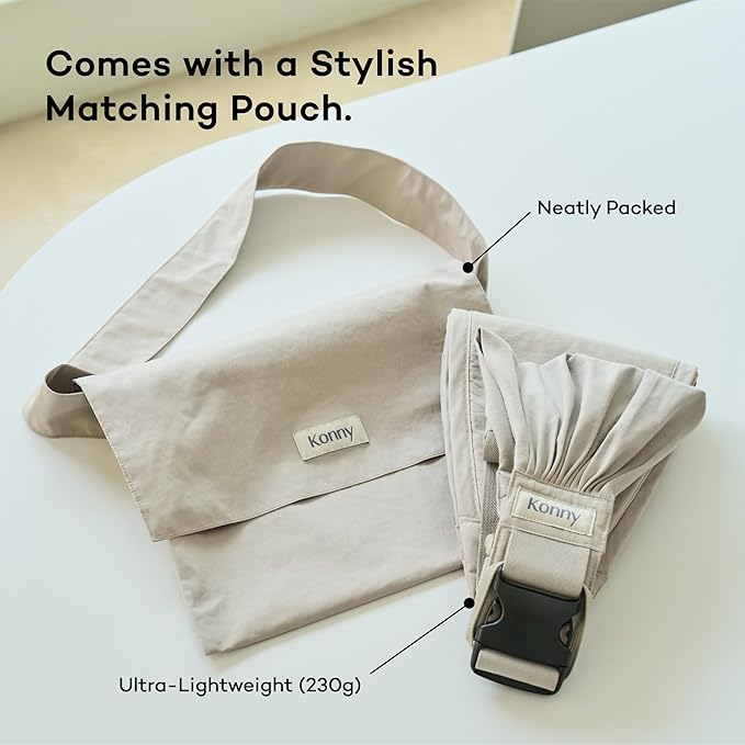 Konny Baby Carrier Hip Seat, Dual Support IHDI Certified with Two Safety Pads, Adjustable Wraps Sling Wearable One Size Fits All, Baby Essentials for 6 to 48 Months up to 44 lbs -Grey Beige