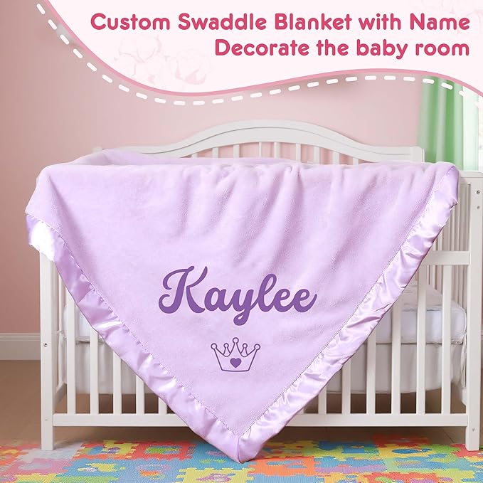 Personalized Baby Blanket with Name, Custom Flannel Swaddle Blankets, Customized Receiving Blanket for Girls, Baby Shower Birthday for Newborn - Purple(36" x 36")