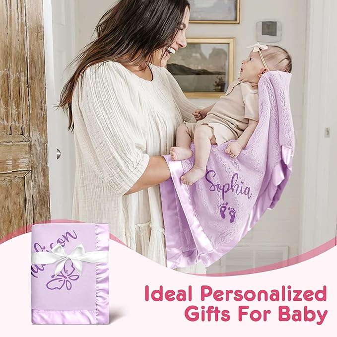 - 【Custom Baby Blanket With Name】 Personalize this soft baby blanket with your child's name and a cute symbol, creating the perfect customized baby gift. Choose from blue, pink, or light purple, with options for printing and embroidery—ideal for baby blankets for boys and girls!