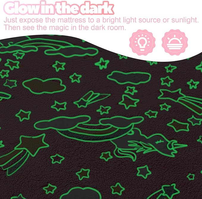 - Glow in the Dark: The glowing patterns on the foldable play mat help stimulate children's senses and promote cognitive development. Padded kid's floor futon mat glows in the dark, so the child futon is handy for use at night